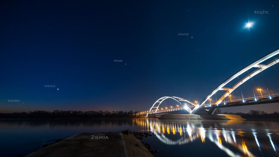 Jakiś czas temu zachęcałem Was na swoim profilu na Facebooku do porannego wstawania. Powodem była poranna parada planet. Teraz do Wenus, Saturna, Marsa i Jowisza dołącza Merkury. W jednym momencie można zobaczyć wszystkie planety Układu Słonecznego widoczne gołym okiem. Jakby tego było mało, między nimi przemieszcza się Księżyc.