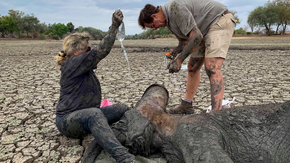 Wśród nich był Jens Cullmann, fotograf dzikiej przyrody z Niemiec, który odwiedzał Park Narodowy Mana Pools w Zimbabwe. Prawdopodobnie małe słonie chciały napić się wody, ale grząski grunt się obsunął i oba wpadły do błota. Gęsta maź nie pozwalała im się wydostać.