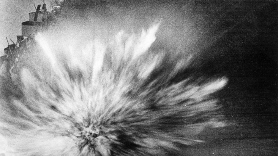 Chaotyczna obrona przeciwlotnicza Amerykanów sprawiła, że kilku japońskim samolotom udało się przebić nad lotniskowce. Jeden z nich zrzucił bomby na „Enterprise" uszkadzając pokład, hangar lotniczy i powodując śmierć 74 osób. W momencie eksplozji trzeciej bomby fotoreporterowi obecnemu na pokładzie udało się utrwalić jej obraz.