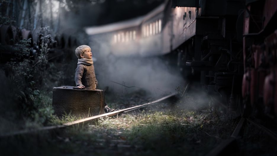 Tak, to była chyba najbardziej zapadająca w pamięć sesja. Załatwiliśmy zgodę na robienie zdjęć, a pracownicy kolei zapytali mnie, gdzie chcę, żeby mi ten pociąg postawili! Mogliśmy do niego wejść, przejechać się nim, mieliśmy pociągnięty prąd. W środku ustawiłam światła, a za pociągiem maszynę do robienia dymu. Ten motyw dymu zresztą też jest inspirowany bajką "Ekspres Polarny". Wyszedł nam taki pociąg Świętego Mikołaja, mimo że aura była jesienna.