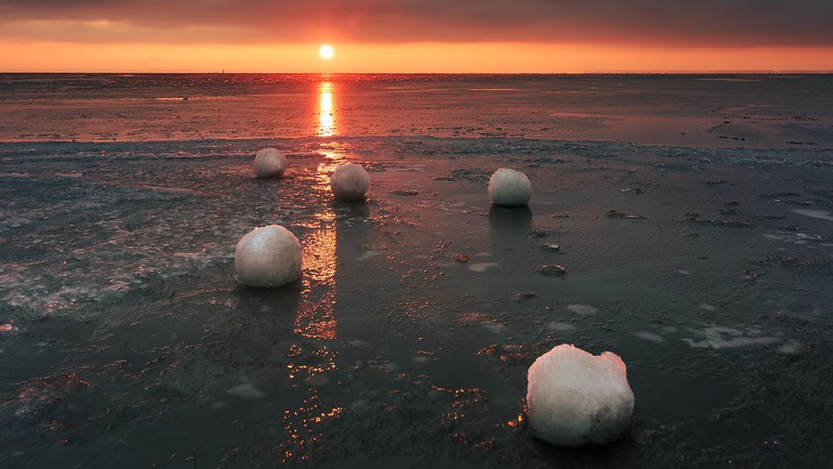 Olech nie raz uchwycił niecodzienne zjawiska nad morzem. Na powyższym zdjęciu możecie zobaczyć lodowe kule, potocznie zwane morszkulcami. Tego typu kule można zobaczyć od czasu do czasu, ale za każdym razem przyciągają one uwagę. Zwłaszcza jeśli uda się je sfotografować w tak niesamowitych warunkach. Na tle pomarańczowego nieba wyglądają zjawiskowo.