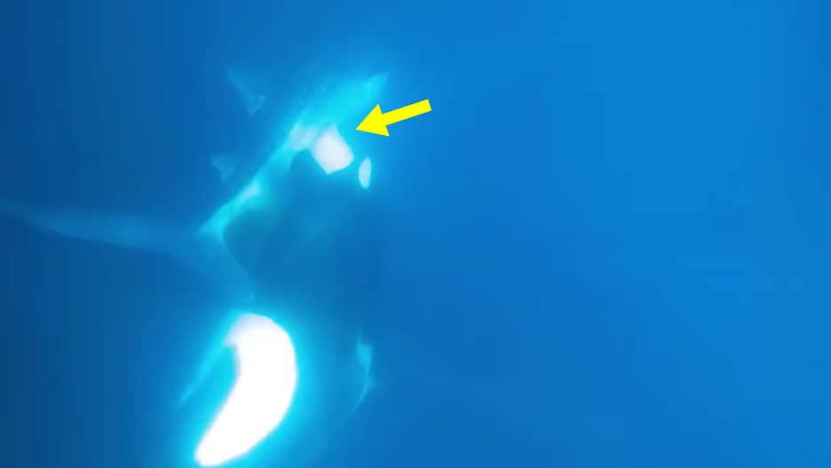 Nagranie zrealizowane u wybrzeży Kalifornii pokazuje orkę, które wgryza się w brzuch rekina wielorybiego i wyrywa mu wątrobę. Nurek James Moskito pływał tamtego dnia w zatoce. Zwrócił uwagę na przeciwne zachowanie stada składającego się z ośmiu orek. Zwierzęta polowały na wspomnianą potężną rybę.