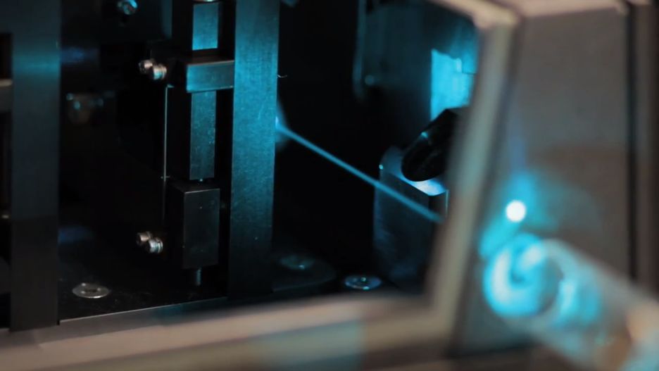 Naukowcy musieli wymyślić metodę, aby być w stanie uchwycić przebycie przez wiązkę lasera drogi długości niecałego pół milimetra - i udało się. Nagranie pokazuje światło podróżujące przez płyn zgromadzony w przezroczystej butelce.