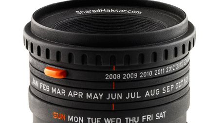 Shadar wyszedł z założenia, że obiektyw to najlepszy symbol jaki może być przypisany do profesjonalnego fotografa. Stąd pomysł na kalendarz w kształcie obiektywu na którym pierścienie zamiast wartości przysłony czy ogniskowej mają funkcje kalendarza. Znajdziecie tam rok, miesiąc, dzień tygodnia i dzień miesiąca.