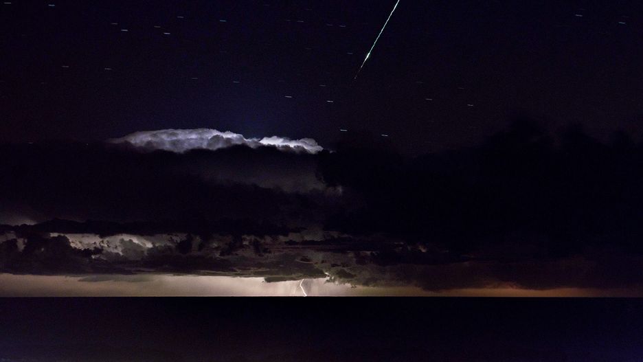 Burza nad Adriatykiem i meteor na niebie na jednym zdjęciu