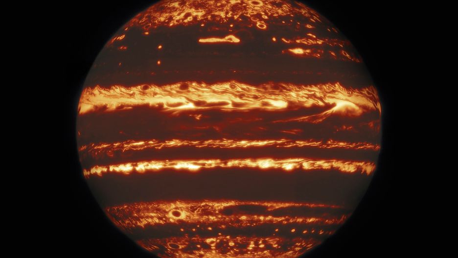 Nowe zdjęcia dostarczone przez International Gemini Observatory pokazują burze w sercu Jowisza. Widać też charakterystyczną pomarańczową poświatę, która jest czymś absolutnie nowym w obrazie.