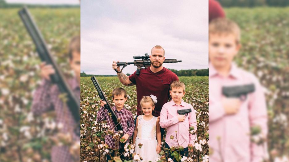 Były żołnierz kpi z kampanii Gillette. Zdjęcie rodzinne z bronią w ręku