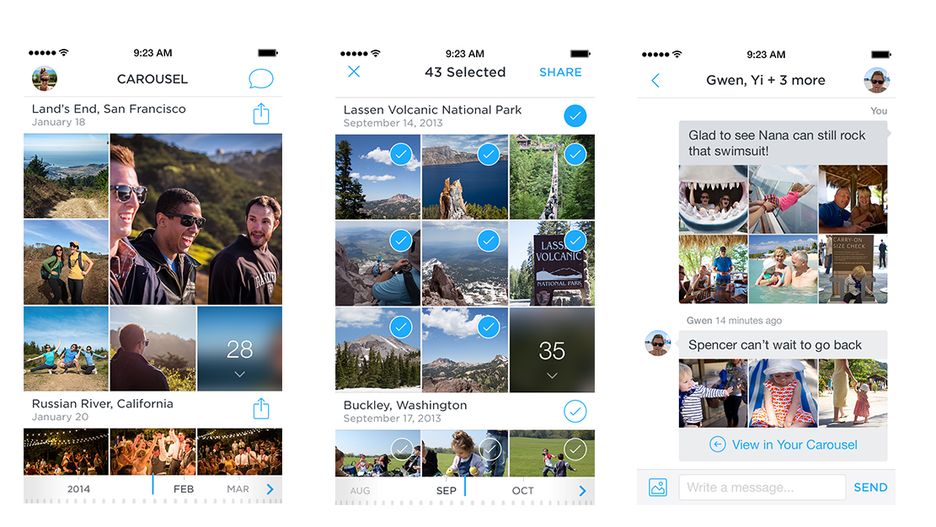 Możliwość dodawania wiadomości do zdjęć sprawia, ze Carousel jest nie tylko miejscem do przechowywania zdjęć, ale też platformą społecznościową.