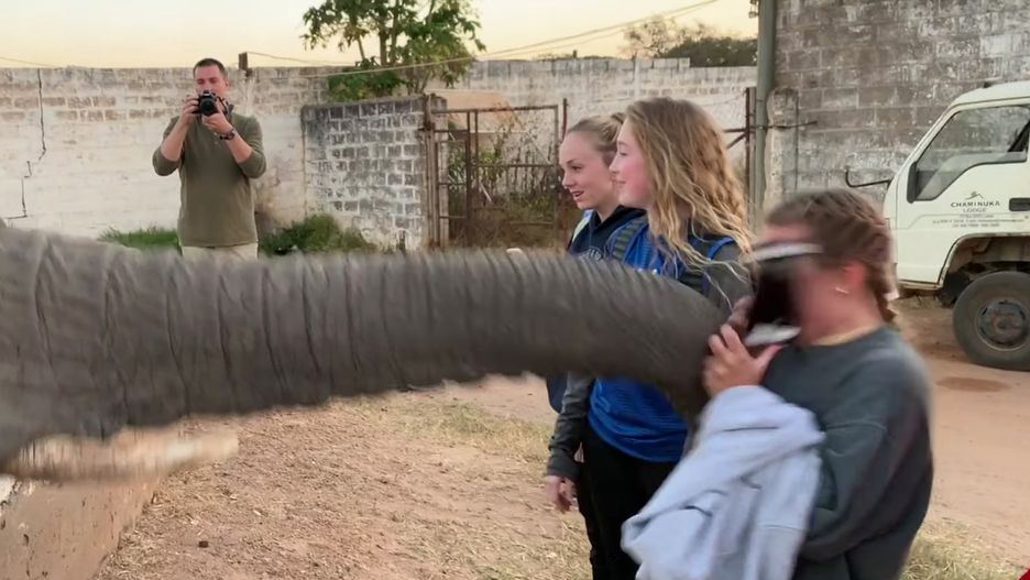 Pewna uczennica odwiedziła Zambię. Gdy zobaczyła słonia, nie mogła się powstrzymać od zrobienia zdjęcia. Gdy wyciągnęła swojego smartfona, zwierzę zareagowało impulsywnie i wytrąciło jej telefon z ręki. Przy okazji dostała trąbą w twarz.