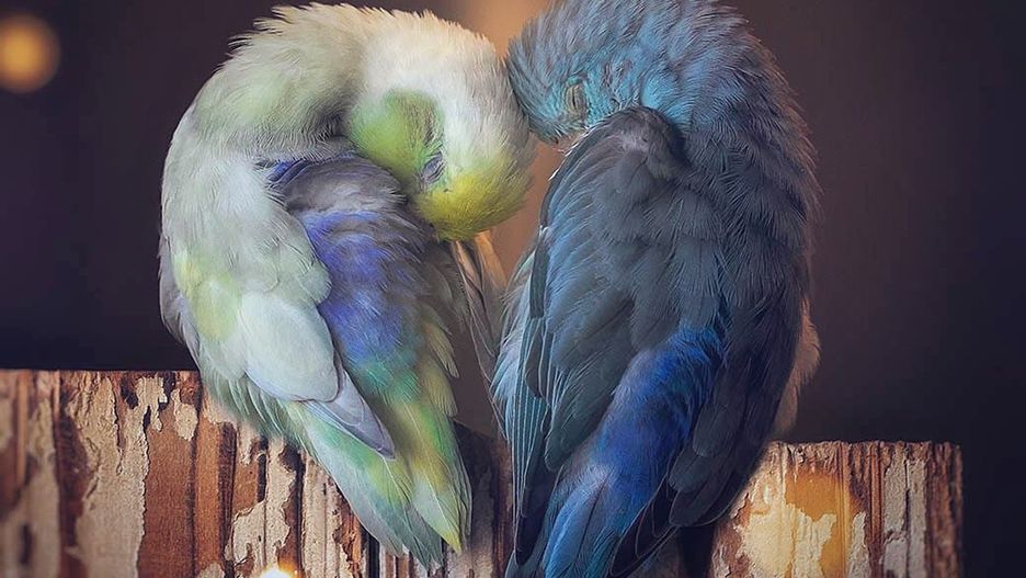 Choć są nieduże, mają wielkie serca. Fotografka uchwyciła więź między papużkami