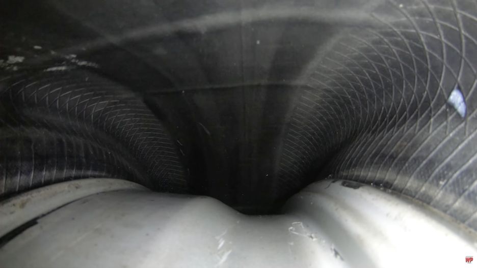 W kole znalazła się kamera GoPro Hero 7 Black z lampką LED, by w ogóle było widać cokolwiek. Eksperyment Matta wypalił i udało mu się nagrać zachowanie opony pod obciążeniem samochodu na nierównościach. Na potrzeby przedsięwzięcia, Matt jechał dość wolno, bo nie wiadomo, co mogłoby się stać z kamerką i kołem przy większej prędkości.