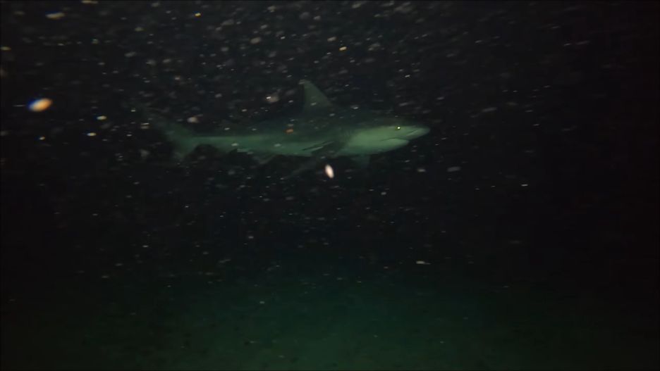 Po wrzuceniu kamery do wody, od razu wokół zebrały się ryby, żywo zainteresowane dziwnym urządzeniem. Przyglądały mu się liczne gatunki. Niektóre przypominają szczupaki, ale pojawia się też znacznie większe. Gdy zapadł zmrok, otoczenie się zmieniło, a wśród ryb zagościły groźnie wyglądające rekiny, a obok okoniowate.