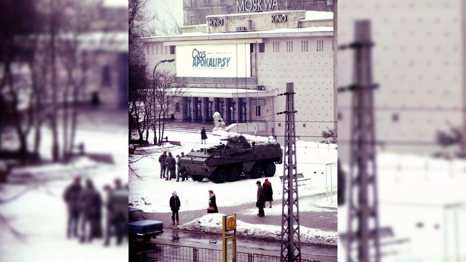 Myślę, że w historii polskiej fotografii nie ma zdjęcia, które mogłoby oddać ducha czasu z taką mocą jak obraz Chrisa Niedenthala. Zdjęcie ukazuje wojskowy transporter opancerzony stojący przed warszawskim kinem Moskwa, w którym wyświetlano film F.F. Coppoli "Czas Apokalipsy". Stało się ono jednym z najważniejszych symboli stanu wojennego.