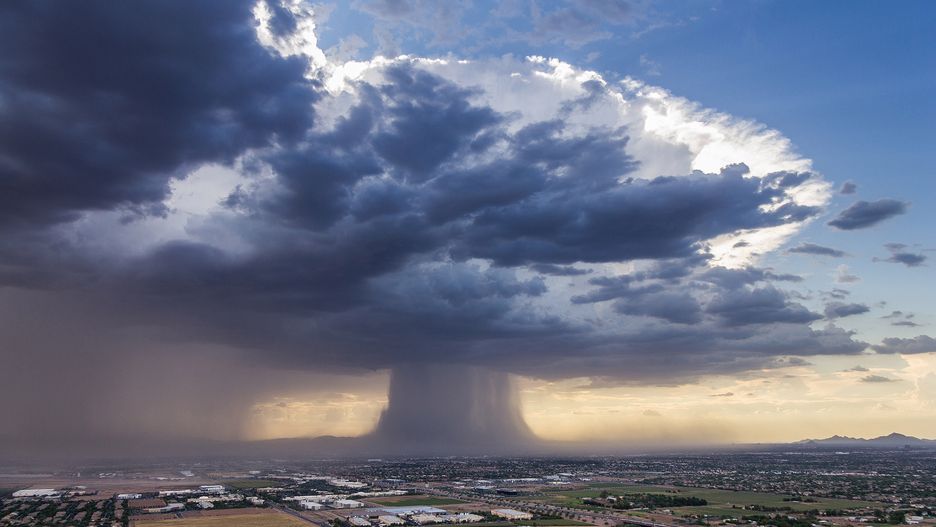 Jerry Ferguson fotografował panoramę miasta z helikoptera telewizyjnego. Udało mu się zrobić niesamowite zdjęcia prądu spadającego nad Phoenix w Arizonie (USA). Fotograf był w odpowiednim czasie, w odpowiednim miejscu – takie sytuacje nie zdarzają się często.