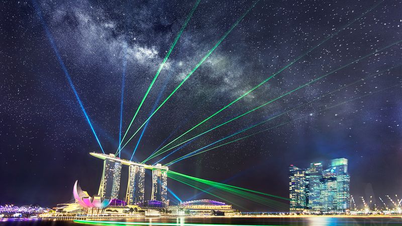 Problem ze zdjęciami gwieździstego nieba nocą w mieście polega na wysokim kontraście między tym co chcemy pokazać w mieście, czyli ulicami i budynkami, a niebem. Niebo w mieście jest "zanieczyszczone" przez światła terenu zabudowanego, więc z prawie niewidocznymi gwiazdami. Jednak właśnie możliwość połączenia miasta z rozgwieżdżonym niebem dałoby niesamowity efekt. I taki efekt udało się uzyskać na zdjęciach Justina Ng z Singapuru.