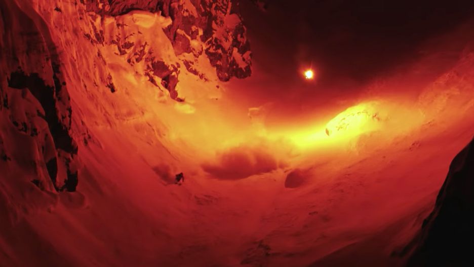 Oryginalny pomysł na film narciarski miał Nicolas Vuignier. Do jego realizacji potrzebował ciemnej nocy, drona i czerwonych flar świetlnych. Efekt jest świetny!