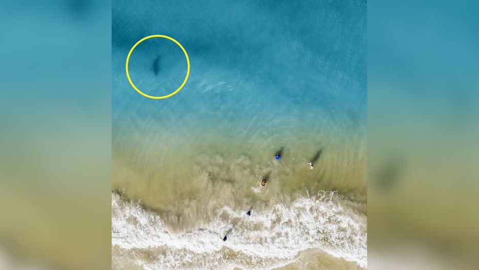 Dan Watson wziął na rodzinny wypad na plażę swojego drona DJI Mavic 2 Pro. Gdy dzieciaki się bawiły, ten postanowił trochę polatać. W pewnym momencie, gdy kadrował zdjęcie, zauważył w wodzie duży cień zmierzający w stronę jego rodziny. W ułamku sekundy uświadomił sobie, że to rekin i zaczął krzyczeć, by najbliżsi wychodzili z wody.