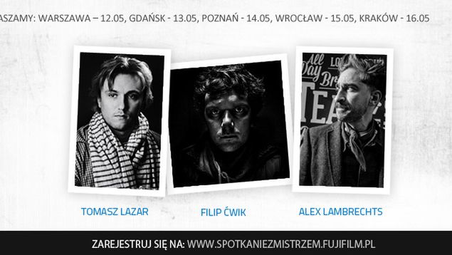 Od 12 do 16 maja w pięciu miastach Polski Fujifilm organizuje Spotkania z mistrzem. Warsztaty dla miłośników fotografii poprowadzą trzej znani fotografowie: Tomasz Lazar, Filip Ćwik i Alex Lambrechts. To druga edycja tego typu spotkań. Pierwsza odbyła się w listopadzie i cieszyła się dużą popularnością.