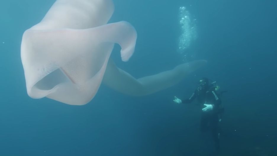 W okolicy Nowej Zelandii nurkowie natknęli się na przedziwne stworzenie. Byli zaskoczeni, gdy 8-metrowe zwierzę pojawiło się nagle tuż przed nimi. Udało się uwiecznić wszystko na filmie.