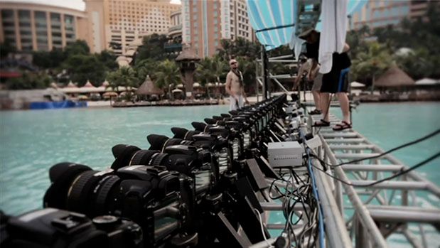 Do wykonania takich ujęć wcale nie jest potrzebna wysoka jakość sprzętów. Ważne, by było ich dużo. Koszty są podobne - kilkadziesiąt prostych aparatów może kosztować tyle, ile jeden wysokiej klasy. Okazuje się, że wystarczą już 24 aparaty, aby skopiować we własnym domu efekt spowolnienia akcji. Tak zrobiła grupa przyjaciół pochodząca z Włoch. Zobaczycie sami. Projekt nazywa się "SHOOT to THRILL":