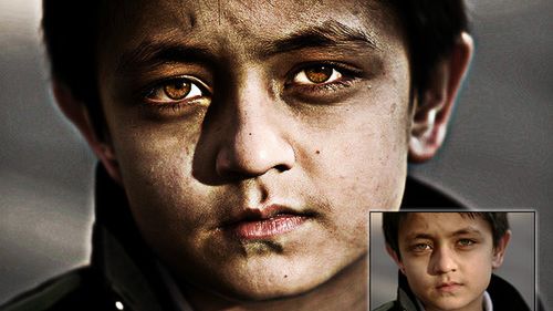 KROK 5: Na ostatnio edytowanej warstwie wykonujemy kolejny krok. Zdjęcie jest teraz trochę przepalone, więc należy je przyciemnić. Wybieramy na klawiaturze Ctrl+i (Command + i). Teraz wygląda trochę lepiej, prawda? Później naciskamy klawisz D, zmieniając czołowy kolor na biały. Później wybieramy Pędzel (Brush) o delikatnych bokach, wymiarze ok 20px i kryciu (Opacity) ok 20%. Pomalujmy oczy modela na zdjęciu, aby trochę je rozjaśnić.