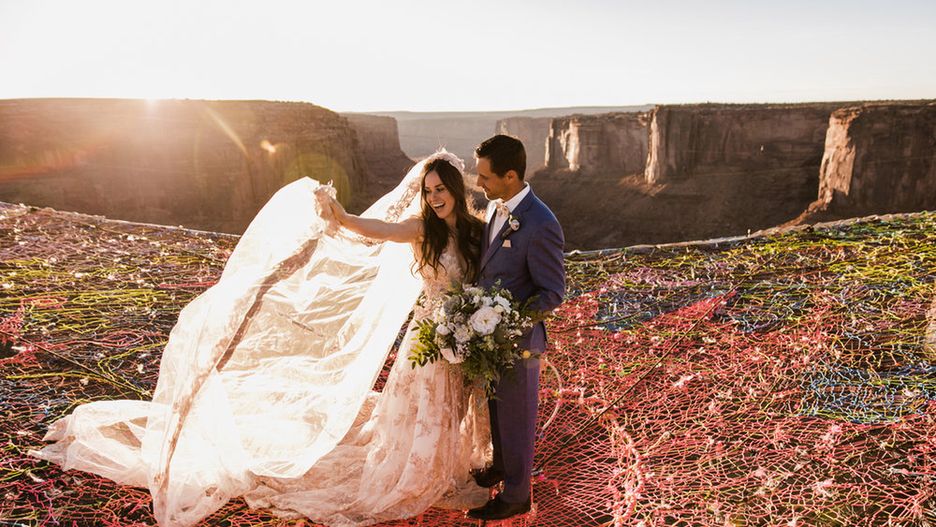 Trzeba przyznać, że ślubne plenery fotograficzne to kategoria sama w sobie. Para z Kalifornii podniosła poziom jeszcze wyżej - i to dosłownie! Ryan Jenks i Kimberly Weglin zawarli związek małżeński nad pustynią Moab w stanie Utah, gdzie zakochali się w sobie, a później zaręczyli.