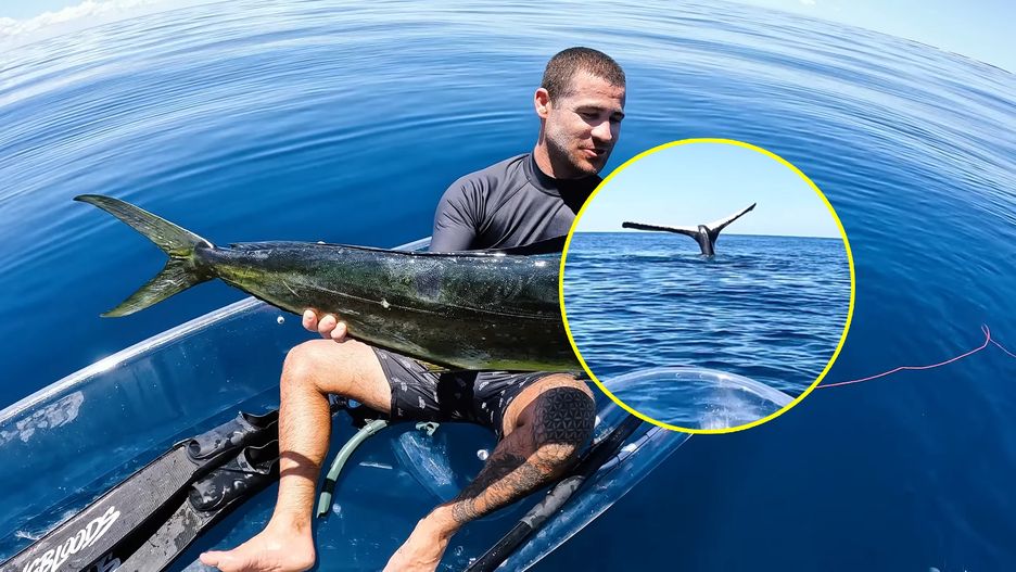 YouTuber Brodie Moss pływał swoim przezroczystym kajakiem po oceanie, gdy nagle zobaczył wystającą nad wodą płetwę wieloryba. Zwierzę się nie ruszało, a jego ogon wyglądał fragment samolotu. Wszystko widać na filmie.