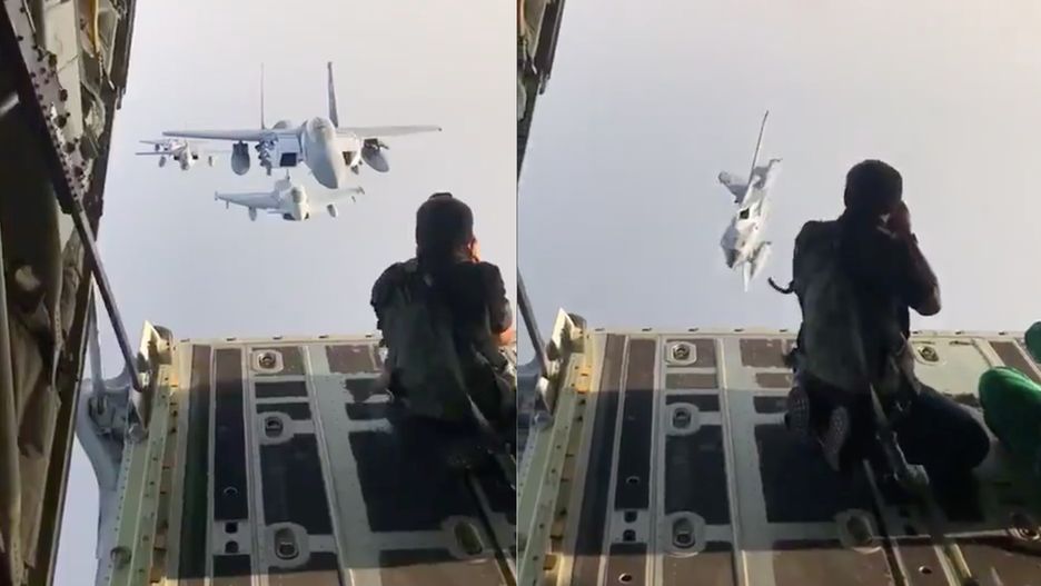 Jak zrobić doskonałe zdjęcie lecących myśliwców F-15s? Nic prostszego – wystarczy nimi dobrze pokierować z otwartej rampy transportowca C-130 lecącego przed nimi. Chwilka… Co…?! Tak jest, dobrze czytacie – trzeba pokazać samolotom, gdzie mają się ustawić, co zrobił Ahmed Hader.