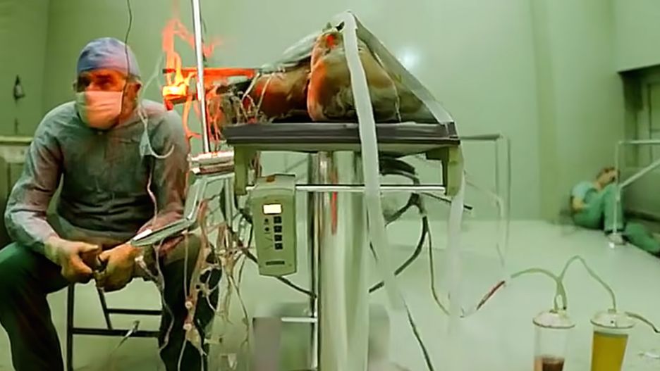 Kadr ukazujący zmęczonego prof. Zbigniewa Religę po wielogodzinnej operacji przeszczepu serca. Nie był to jego pierwszy zabieg, bo ten w Polsce wykonał już w 1985 roku w Zabrzu. Religa pamiętał każdy szczegół wykonywanej operacji.