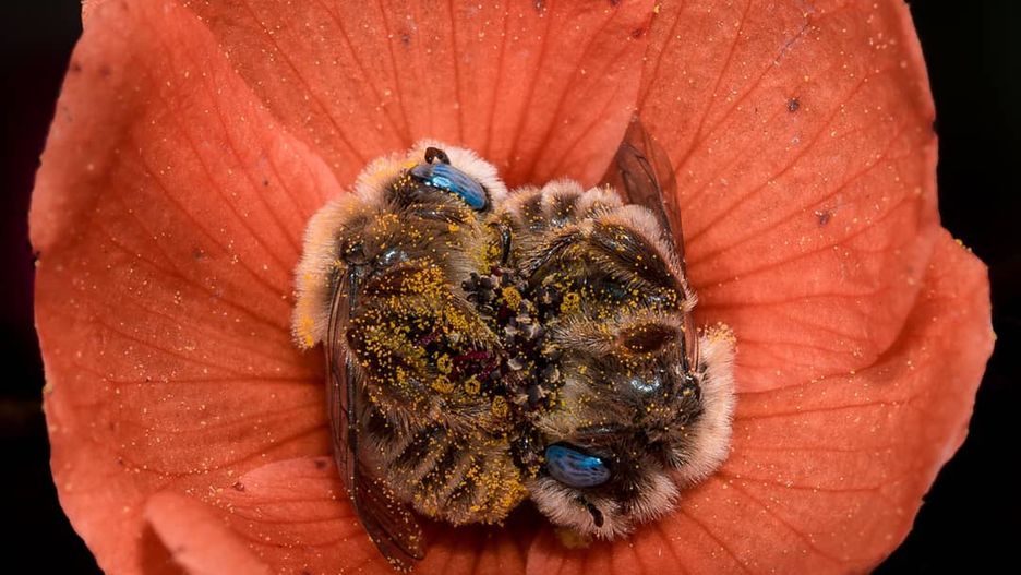Fotograf dzikiej przyrody Joy Neely podczas wiosennego spaceru ze swoją narzeczoną natrafił na sypialnię pszczół. Rozglądając się za kwiatami maku natknęli się na ciekawe zjawisko. W pomarańczowych kwiatach malwy ukryte były śpiące pszczoły.