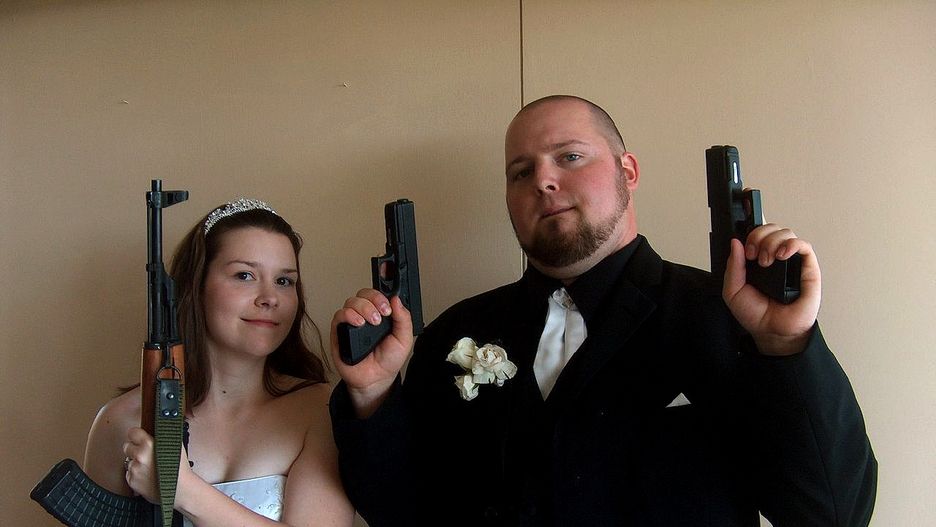 No ja myślę, że nie! Nie dość, że para młoda przeżyła koszmar w trakcie najpiękniejszego dnia swojego życia, to jeszcze nie będą mieli zdjęć z pleneru. Wybaczcie mój brak współczucia, ale właśnie dla takich ludzi od 1985 roku istnieją Nagrody Darwina. Rozumiem, że walory artystyczne fotografii są ważne, a strzelba nadałaby im wyrazistości (i tandety), ale czy na Boga nie można ją było najpierw rozładować?! Przecież to tak jakby robić zdjęcia pływaków olimpijskich w czasie walki o złoty medal na igrzyskach i kazać im pływać z podłączonymi do prądu tosterami. Fotka byłaby pewnie fajna, ale chyba znalazłby się ktoś kto by powiedział, że to ciut niebezpieczne... a może i nie.