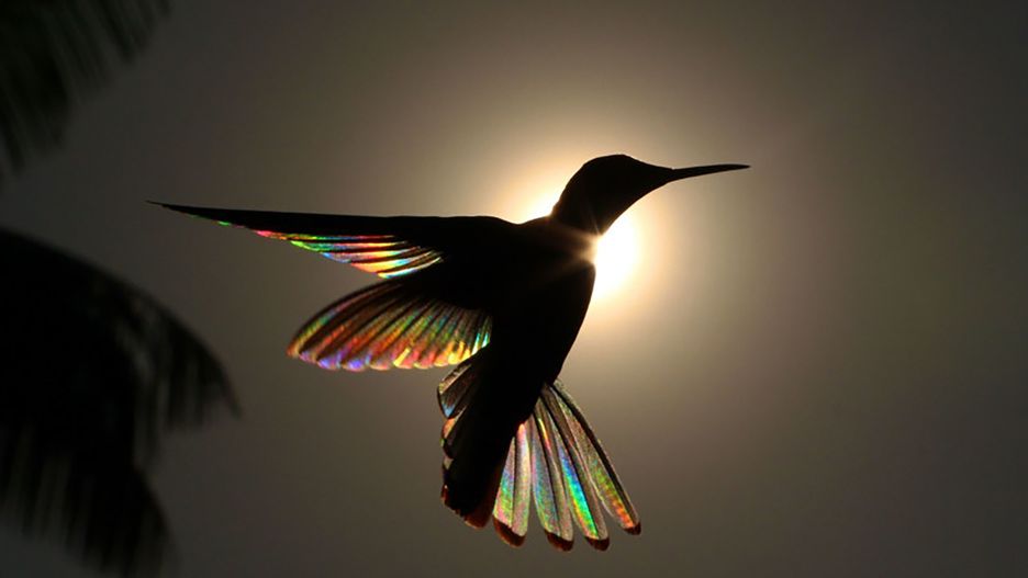 W przypadku kolibrów samce są większe niż samice. U tych ptaków dymorfizm jest bardzo widoczny, co przekłada się na kolorowy wygląd. Ich pióra są skonstruowane tak, że przepuszczają światło, rozszczepiając je na barwy podstawowe. W efekcie tego mienią się kolorami tęczy. Pokazał to na zdjęciach miłośnik dzikiej przyrody Christian Spencer, który zauważył coś dziwnego, gdy zrobił zdjęcie kolibrowi pod światło. Skrzydła ptaszka zadziałały jak pryzmat. Ciekawostką jest, że w piórach kolibrów naturalnie występuje jedynie barwnik czarny i brązowy.