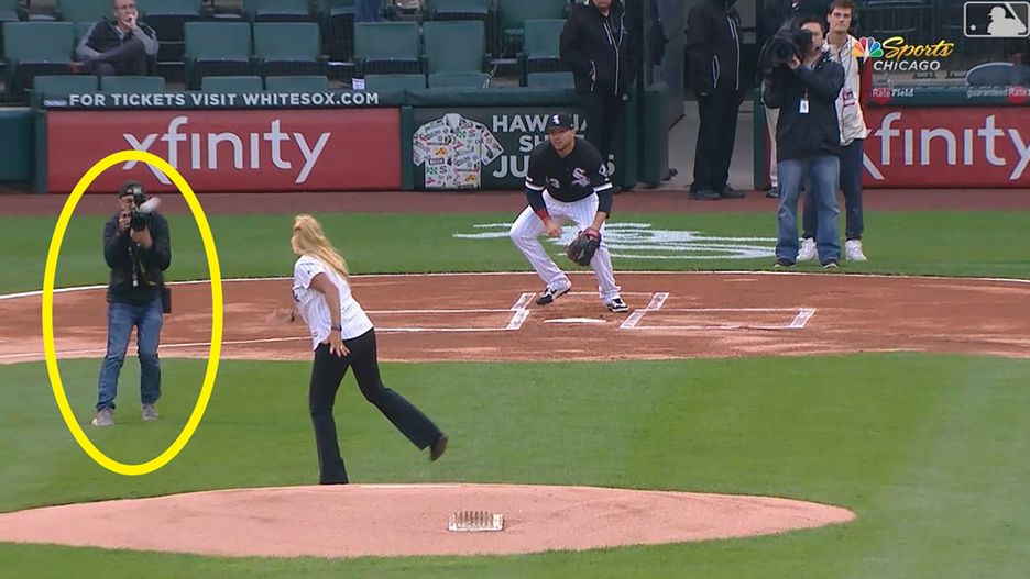 Worst first pitch ever? Photographer gets hit with ceremonial first pitch