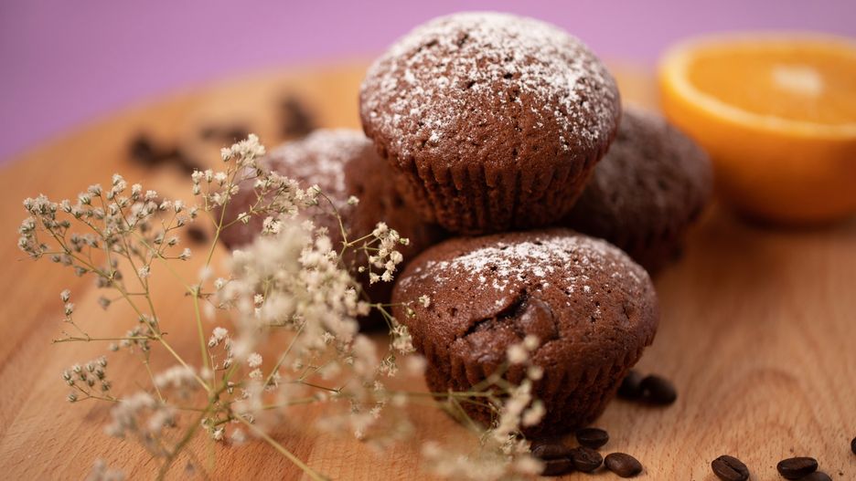 Kiedy babeczki trochę ostygły rozejrzałam się po mieszkaniu w poszukiwaniu czegoś, co może posłużyć mi za tło i czegoś, co ożywi kadr. Odcięłam kilka gałązek gipsówki, która stoi w wazonie od ostatniej sesji, złapałam garść ziaren kawy, kawałek kory cynamonu, przekroiłam pomarańczę i zabrałam się za zdjęcia.