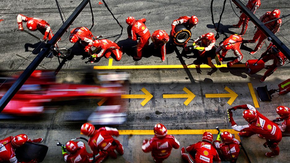 Efekt rozmycia uzyskany dzięki relatywnie długiemu czasowi naświetlania pozwolił uchwycić skupienie i precyzję w zachowaniu mechaników podczas pit-stopu w stajni McLarena w czasie Grand Prix Chin.Zdjęcie wykonane aparatem Canon EOS 1D Mark III, ogniskowa 500mm, czas ekspozycji 1/15 s, wartość przysłony f/4.