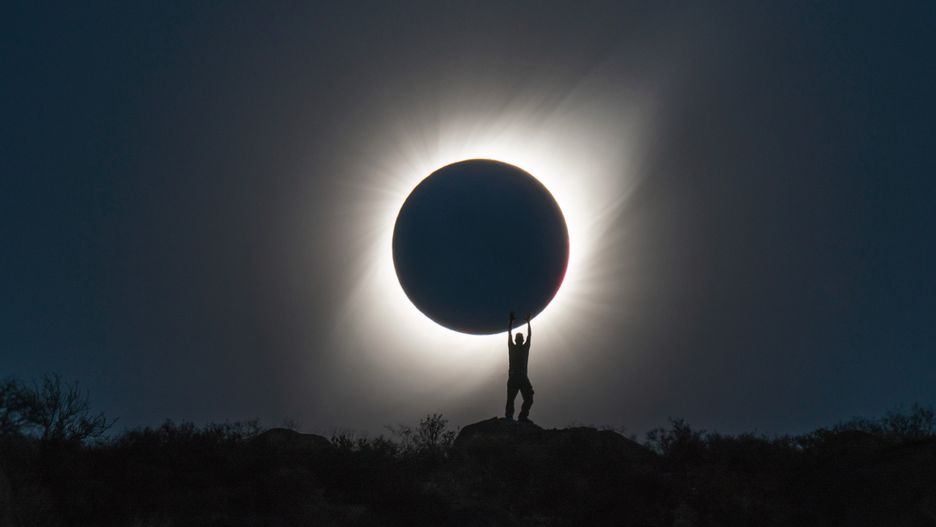 Genialne zdjęcie pełnego zaćmienia Słońca przypomina mitycznego Atlasa