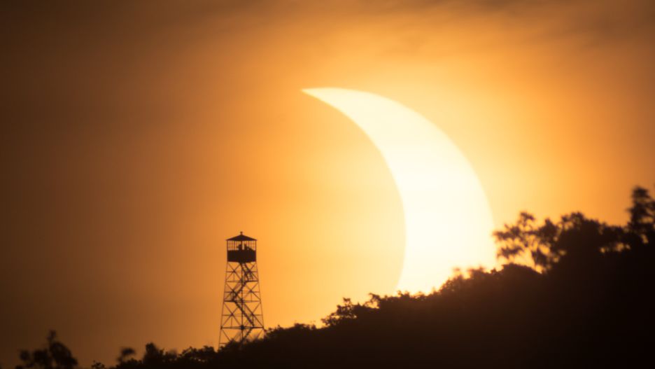 Zaćmienie Słońca w Ameryce Północnej było widoczne w formie częściowej. Tę okoliczność do zdjęć postanowił wykorzystać Julian Diamond ze stanu Nowy Jork w USA. Jego zainteresowanie astronomią oraz astrofotografia doprowadziły do bardzo starannego zaplanowania wymarzonego kadru, rozrysowania go oraz obliczenia dokładnie tego, gdzie ma być, jak ustawić aparat i ile będzie miał na to czasu.