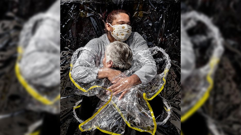 Zdjęcie Nissena przedstawia 85-letnią Rosę Luizię Lunardki, która czule przytula się do pielęgniarki Adriany Silvy da Costa Souzy z domu opieki Viva Bem w brazylijskim Sao Paulo. Fotograf wykonał je 5 sierpnia 2020 roku.