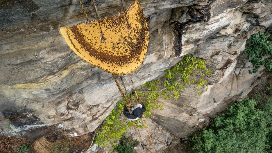 Himalajskie pszczoły skaliste są największym gatunkiem na świecie – osiągają rozmiary ponad 3 centymetrów długości. Ich gniazda powstają na zboczach gór oraz nawisach skalnych na wysokości ponad 2500 metrów. Wyprawa po miód jest dla wielu ogromnym wyzwaniem, lecz chęć szybkiego zarobku motywuje do działania. Mimo braku strojów ochronnych i zabezpieczeń, wspinają się oni na ręcznie plecionych bambusowych linach, by zdobyć cenny towar.