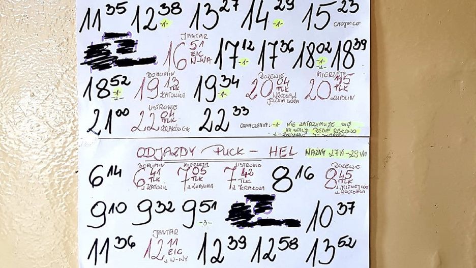 Rozkład jazdy na dworcu PKP w Pucku stał się prawdziwym hitem internetu. Mieszkanka Gdańska postanowiła sfotografować odręcznie napisaną kartkę z rozpiską pociągów, obowiązującą do końca wakacji. - Lepsze to, niż brak rozkładu - komentują internauci.