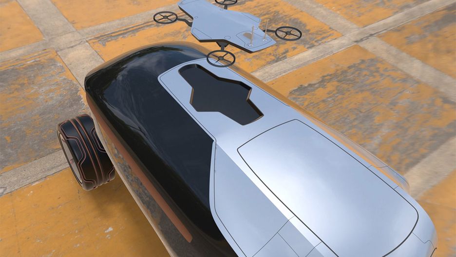 Interesująca koncepcja fotograficznego samochodu przyszłości z własnym dronem