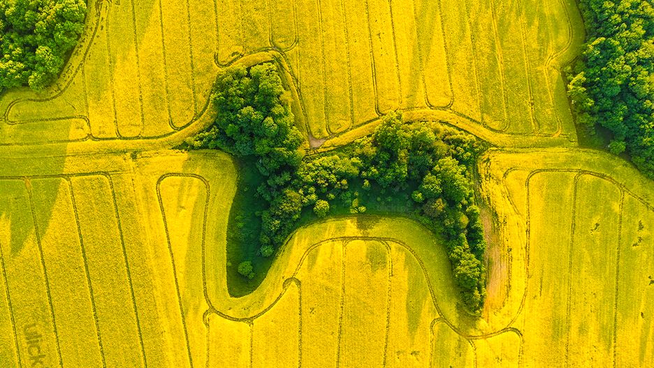Jan Ulicki sfotografował dronem bardzo ciekawą formację drzewną. Wygląda ona jak piesek. Jest interesująca, tym bardziej że dookoła zielonego zagajnika są pola rzepaku, który właśnie kwitnie.