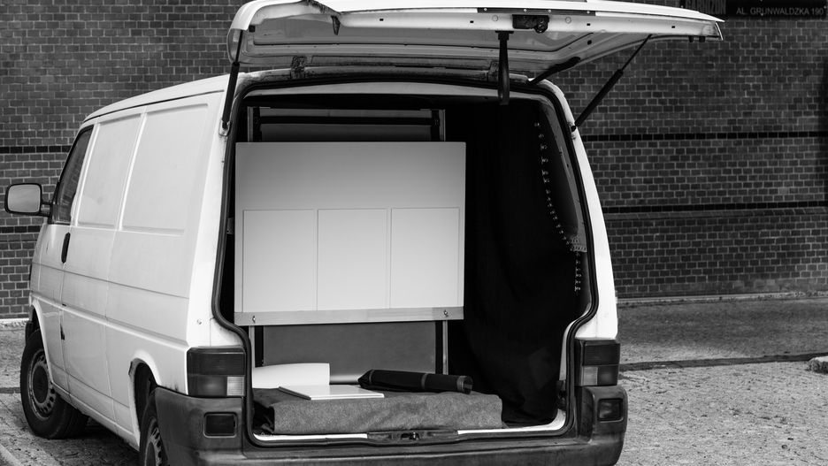 Wizją dyplomu Jacka było stworzenie własnej camery obscury, więc wziął to, co miał pod ręką i zaczął działać. Padło na jego samochód – Volkswagena transportera. W jego klapie fotograf wywiercił otworek o średnicy 1,2 mm oraz zbudował ruchomą matówkę.