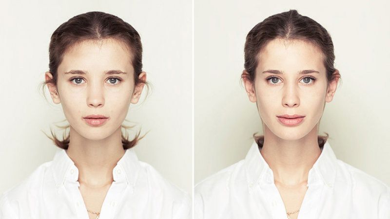 Nikt z nas nie ma symetrycznych ciał, a zwłaszcza twarzy. Jeśli podzielimy twarz na dwie połówki i scalimy w jedno zdjęcie – zobaczymy kompletnie nową wizję naszego „ja”. Twarz stworzona z jednej połówki będzie kompletnie inna niż druga, chociaż będą należały do tej samej osoby.