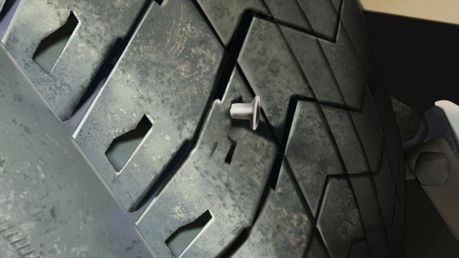 Poniżej możecie zobaczyć w przybliżeniu, że gwóźdź, który podobno przebił oponę wygląda jak narysowany.