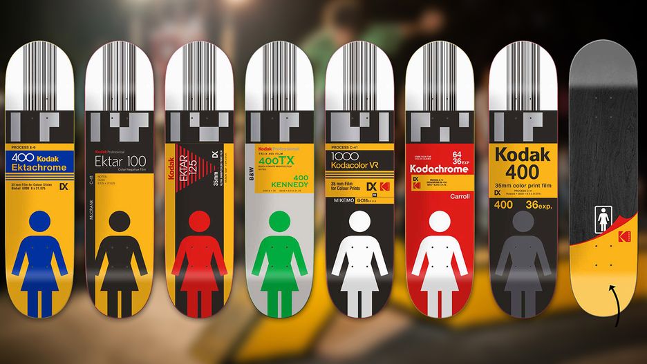 Dla upamiętnienia marki kodak i pokazania głębokiego sentymentu, Girl wyprodukowała specjalną linię blatów do deskorolek. Są to profesjonalne modele sygnowane nazwiskami ambasadorów marki. Każdemu z nich został przypisany określony film: Ektachrome 400, Ektar 100, Ektar 125, T-rix 400, Kodacolor VR 1000, Kodachrome, Color Gold 400. Szkoda, że zabrakło mojego ulubionego T-maxa. No trudno.