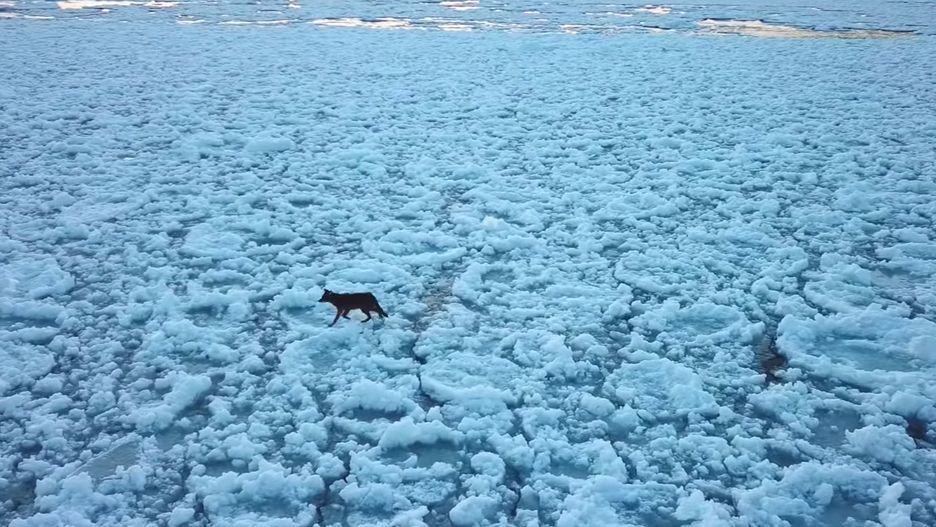 Filmowiec nie spodziewał się, że jego nagranie będzie tak wyjątkowe. Kiedy słońce było już bardzo nisko, zobaczył poruszającą się na zamarzniętym jeziorze niewielką kreskę. Gdy obniżył lot drona, okazało się, że jest nią przebiegający przez środek zbiornika wodnego kojot.