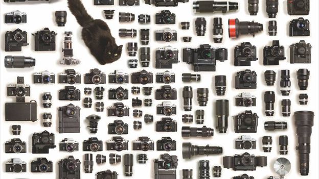 Patrzenie na starannie ułożone korpusy i obiektywy to rozkosz dla oczu każdego fotografa. Nie spierajmy się czy lepszy jest Canon, Nikon, Sony, czy coś innego. Rzućcie okiem na ten zbiór i podziwiajcie wytrzymałość fotografa. Swoją drogą – niezła inwestycja, prawda?
