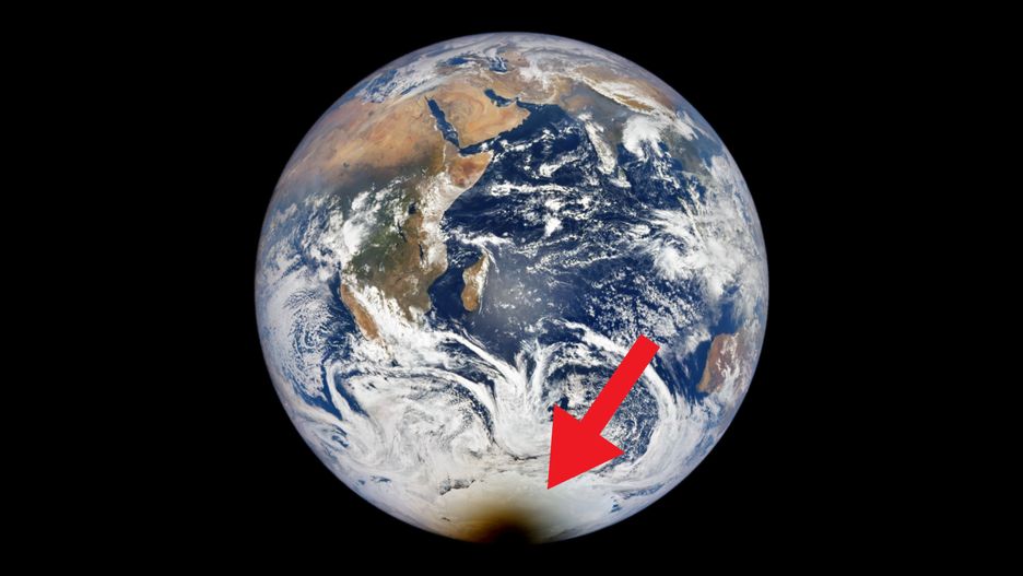 Obserwatorium NASA udostępniło zdjęcia zarejestrowane za pomocą kamery EPIC (Earth Polychromatic Imaging Camera), która monitoruję Ziemię 24 godziny na dobę z kosmosu. Ten obraz ujęto o godzinie 7:58 UTC i nie da się ukryć, że planeta wygląda jakby miała w sobie spory ubytek. Tak oczywiście nie jest.