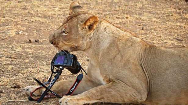 Praca fotografa może obfitować w przygody. Przekonał się o tym Ed Hetherington, którego aparat został prawie zjedzony przez lwa. Fotograf zarejestrował wydarzenie drugim aparatem. To niejedyny przypadek, kiedy aparat zaczyna żyć własnym życiem.